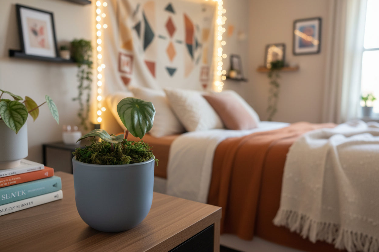 Bring a pop of color to your space with this charming Watermelon Peperomia, nestled in a sleek matte blue ceramic pot. Known for its distinctive watermelon-patterned foliage, this low-maintenance plant thrives in various indoor environments, making it perfect for plant lovers of all experience levels. Its compact size and easygoing nature mean minimal fuss and maximum visual appeal. Whether displayed on a shelf, desk, or windowsill, this peperomia adds a modern touch to any room while requiring just basic care to flourish.